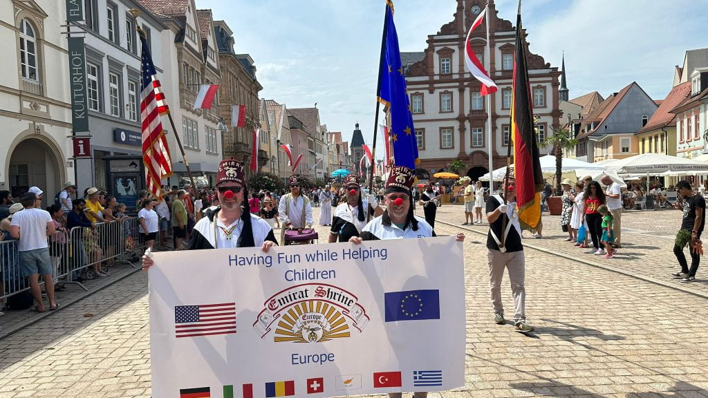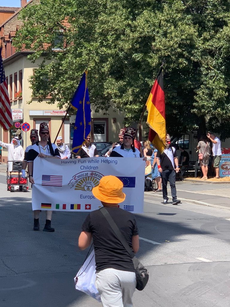 On July 9th, one of the hottest days this year, 4 Brethren of our lodge together with other nobles, families and friends represented Emirat Shrine Europe during the Parade of the 84th Bretzelfest in Speyer.